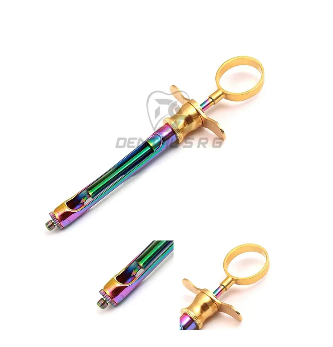 - Set Of 3 Pcs Dental Self Aspirating Anesthetic Syringe 1.8ML Gold And Rainbow Color